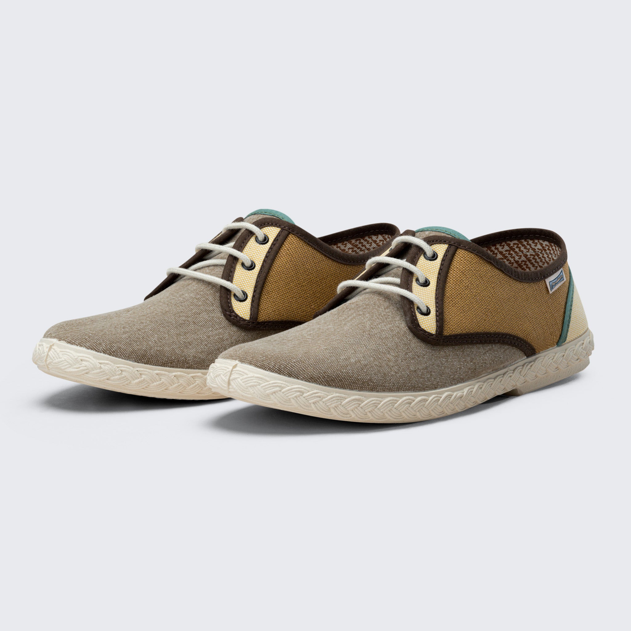 The sisito combi is inspired by the colors and textures that make up our vibrant Barcelona seaside community. Each unique style combines a carefully selected mix of locally sourced materials. Made by hand one pair at a time in La Rioja, Spain. Composition: canvas uppers with vulcanized rubber soles.