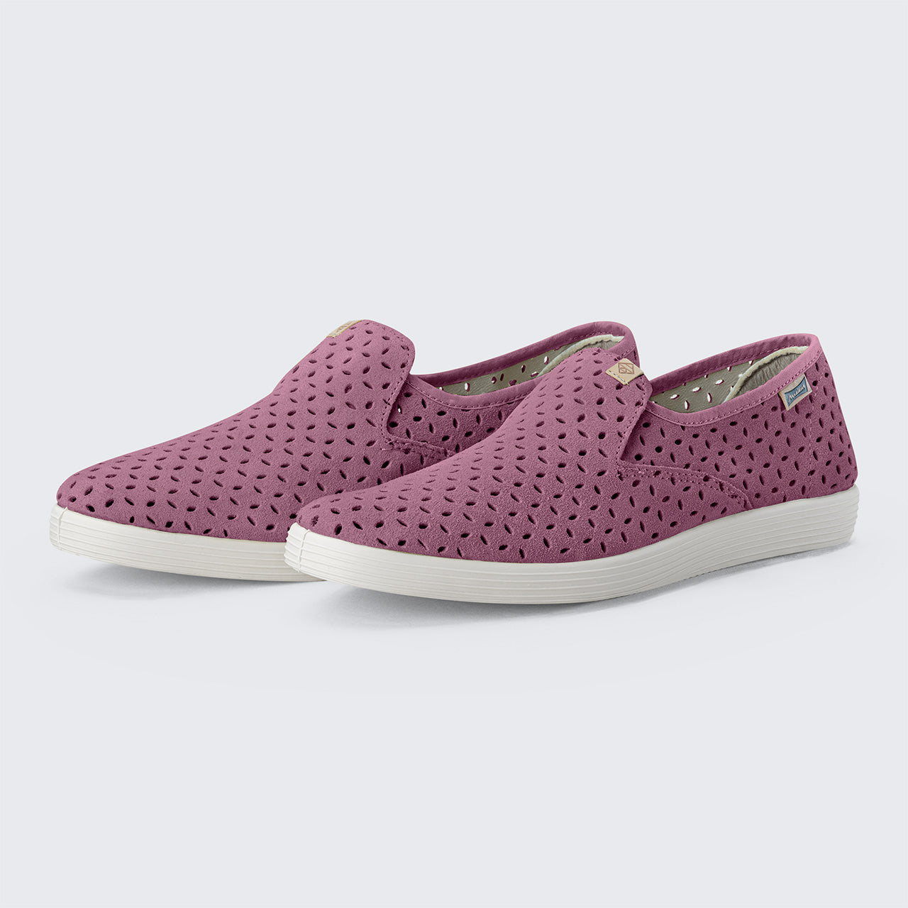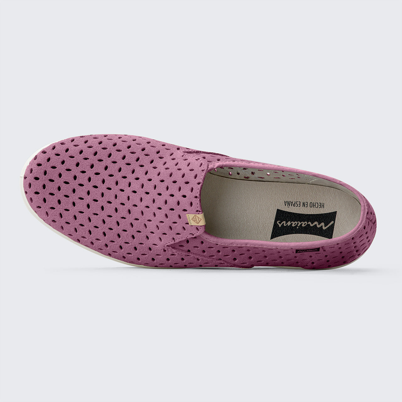 Experience the unparalleled comfort and style of Rufino perforado. Each pair is crafted by hand using locally sourced perforated suede and traditionally vulcanized recycled rubber soles in our factory in La Rioja, Spain.. The elastic band closure ensures effortless fitting. An elegant, must-have pair of slip-ons for navigating the spring and summer seasons.