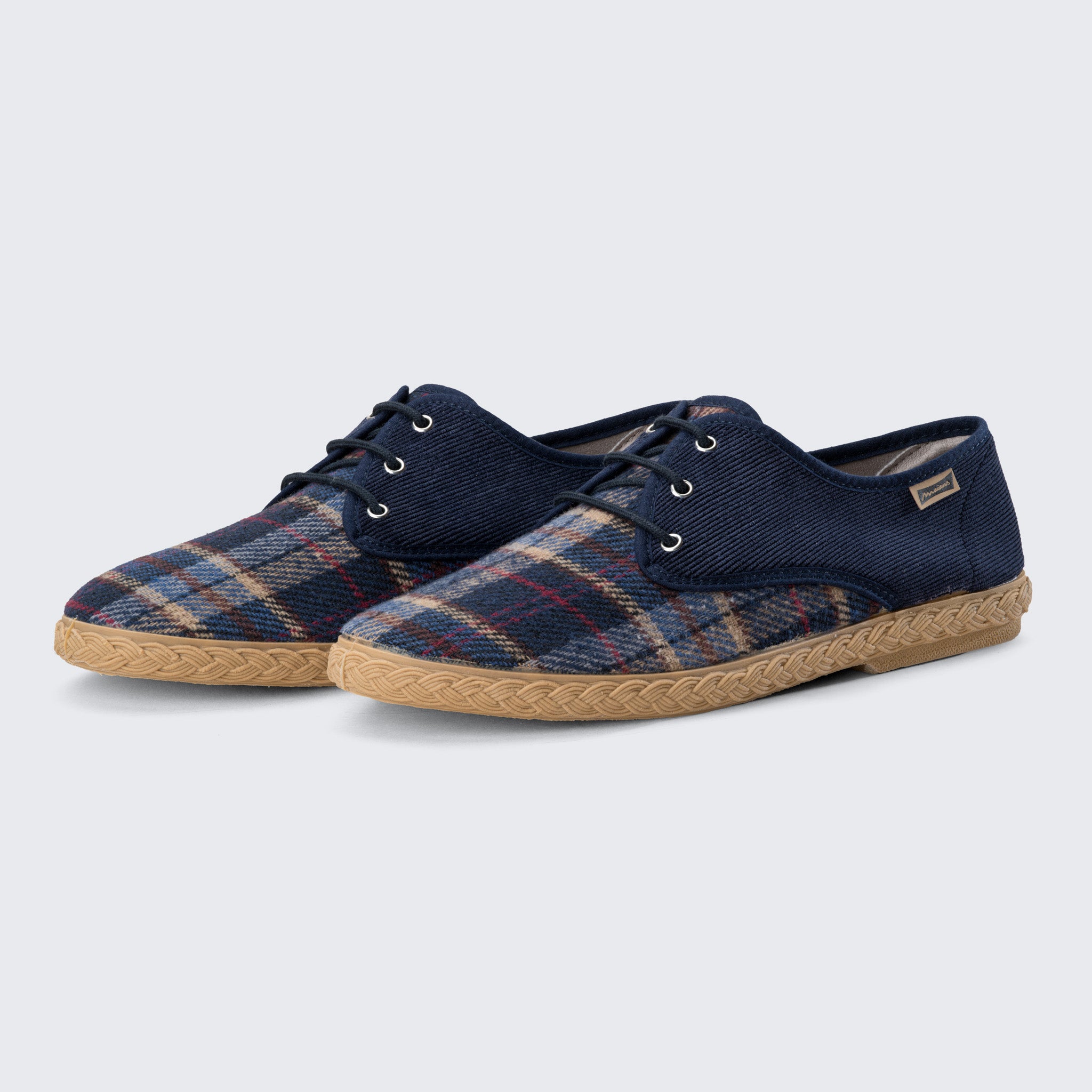 Produced in very limited series using a combination of organic cotton corduroy and high-quality wool plaid, this style provides unmatched comfort in cooler weather. Each pair is hand-crafted in La Rioja, Spain using authentic vulcanization.