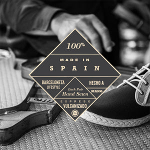 Nos asociamos hace casi veinte años con una pequeña fábrica de calzado familiar en La Rioja, España. Aceptamos las décadas de experiencia de la familia en la fabricación de calzado y su pequeña e histórica colección de moldes y herramientas patentados. Trabajando juntos, hemos podido unir sus técnicas tradicionales de vulcanización con nuestros diseños mediterráneos de inspiración urbana y playera para crear nuestras colecciones únicas hechas a mano.